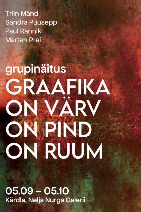 8. septembril avanes Kärdlas Nelja Nurga Galeriis grupinäitus „Graafika on värv on pind on ruum‟, mis uurib lähemalt graafikakunsti kolme elementi – pinda, värvi ja ruumi.