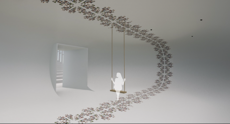 Perspektiivid -> tunnetuslikkusEt luua külastajale kaasahaarav ruumikogemus, on installatsioon täidetud abstraheeritud portfoolio lehtedega. Kõrge kuid kitsas ruum loob intiimse kogemuse. Sisenedes ei jää vaatevälja objekti lagi, laiuvad vaid ruumi vertikaal ning mere horisontaal. Kergelt üles vaadates või pikali heites muutub ruumi olemus ning külastaja satub ise portfoolio sisse.