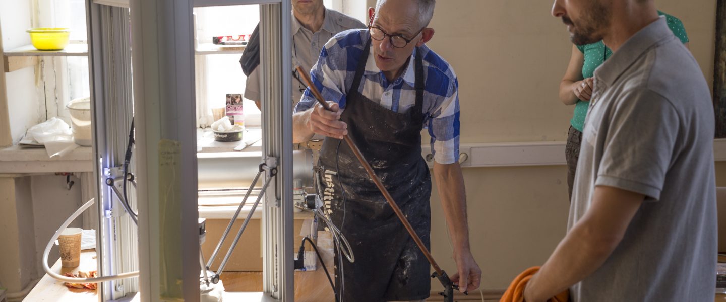 EKA Suveakadeemia töötoa "Clay 3D Printing" juhendaja Jonathan Keep esitlemas savi 3D trükkimise võimalusi. Foto autor Johan Pajupuu.