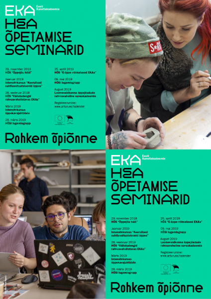 Erandina võib EKA Galerii plakatidel kasutada teksti foto/visuaali peal.