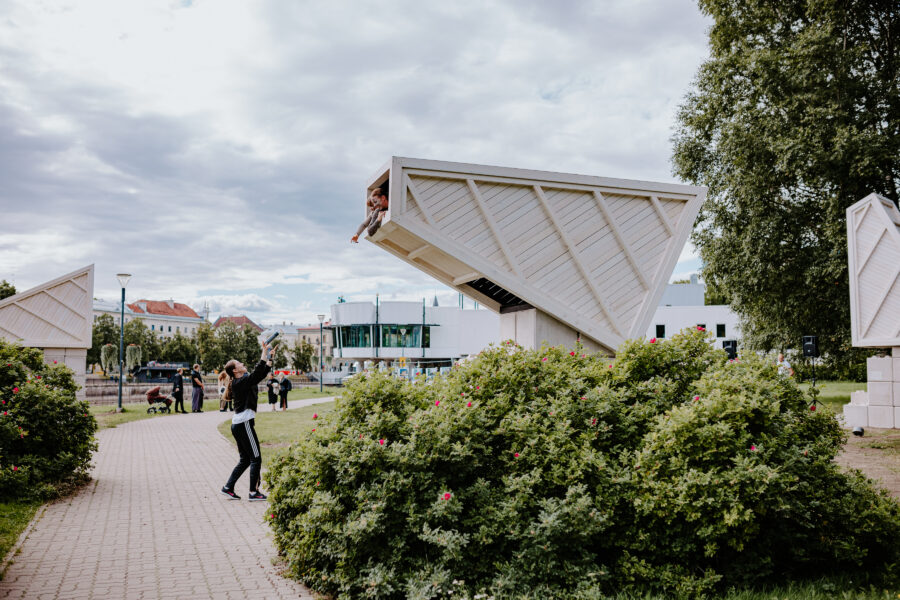Juulis 2022 avasid EKA arhitektuuriteaduskonna tudengid Tartus Emajõe ääres puidust varjualuse KINO, mis tudengeid juhendanud arhitektide Alvin Järvingu ja Ott Alveri sõnul meenutab ehitise asemel pigem masinat– tegemist on heas mõttes piire nihutava objektiga, mille ootamatu vorm tuleneb 100% sisust.