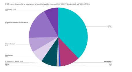 2022. aasta EKA süsiniku jalajälg oli 1854 tCO2e / 1418 inimest = 1.3 tCO2e/in aastas.