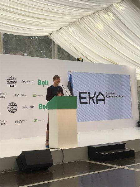 Reet Aus ja Maria Kristiin Peterson Moi Ülikooli esindajate ja president Kersti Kaljulaidiga. Foto: Raigo Pajula/VPK