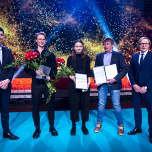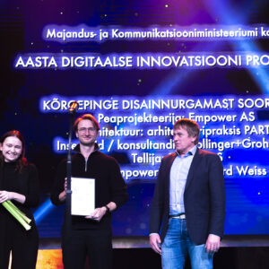Lisaks Elinale Liivale, said 2 ehitussektori innovatsioonipreemiad EKA arhitektuuri teaduskonna õppejõud-doktorandid-nooremteadurid Sille Pihlak ja Siim Tuksam oma “Soorebase” eest.