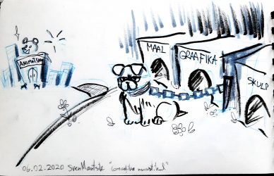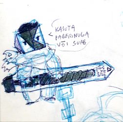 - ülesanne oli enda stiilis see läbi mõelda ja esitada. algne mõte mul oli näidata selle kaudu mu ideed vabade kunstide maskoti jaoks. teine mõte oli vandenõuteooria või müüt/legend kokku panna sellest kuidas kunstioskus inimeseni jõudis.