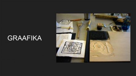 - graafika. joon. heletumedus!!! tekst ja kirjandus. trükkimine. paljundamine. tasapind. lihtsustamine. minimalism. kaasaegne kunst. seosed ja nihestused. installatiivsus. näiteks seee et pidime installatiivse lahenduse leidma väljapanekuks. tänapäeval on paljundamine lihtsam kui kunagi varem niiet graafikaline käsitöö on muutunud nišiks.