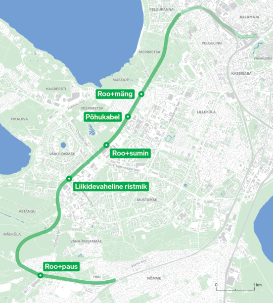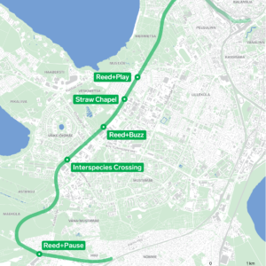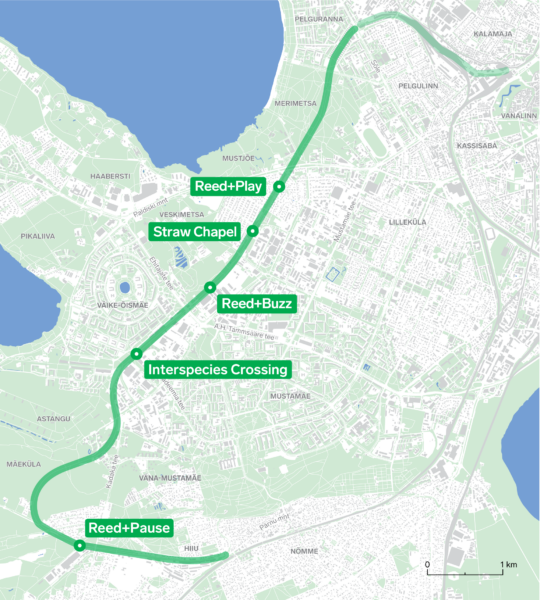 Mustjõele, Veskimetsa ja Hiiule rajatud „Roo“ koosneb kolmest järjestikusest installatsioonist, mille ühiseks keeleks on nende loomiseks kasutatav materjal – pilliroog. „Roo+mäng“, „Roo+sumin“ ja „Roo+paus“ korduvad oma üldise vormi poolest, ent rakendavad sama ehitusmaterjali erinevatel viisidel. „Roo“ pakub vaheldusrikast ruumikogemust inimkülastajale ning elupaika putukatele.