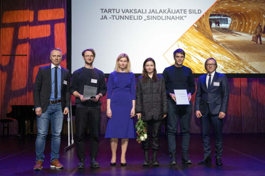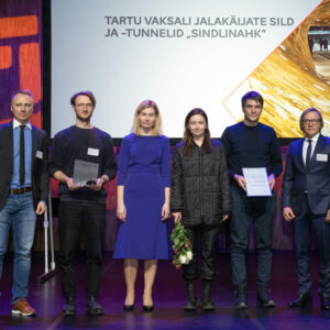 „Parim rajatise ehitusprojekt“ tunnustuse pälvis Tartu Vaksali jalakäijate sild ja -tunnelid „SINDLINAHK“, autorid Sille Pihlak ja Siim Tuksam Arhitektuuripraksisest Part.