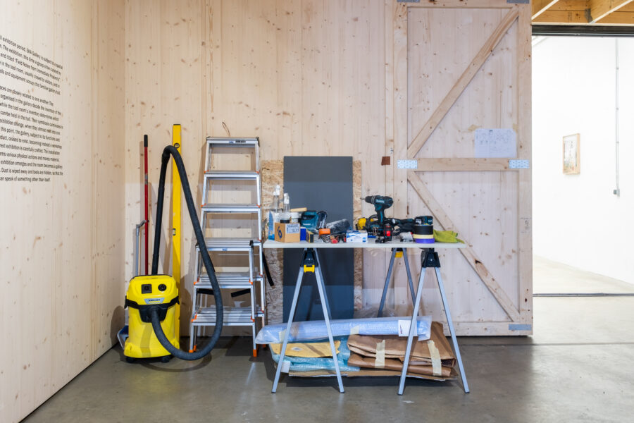Asmus Soodla’s exhibition “Tool Room, Gallery” focuses on the art gallery as an ecosystem, where value-based distinction between the result and the process doesn’t exist. The conceptual starting point of the project is the internal conditions and work processes of the gallery as an institution, as well as its spatial logic. The exhibition focuses on activities that are usually hidden from the visitor’s gaze, but which play a decisive role in how the artwork and the viewer meet.