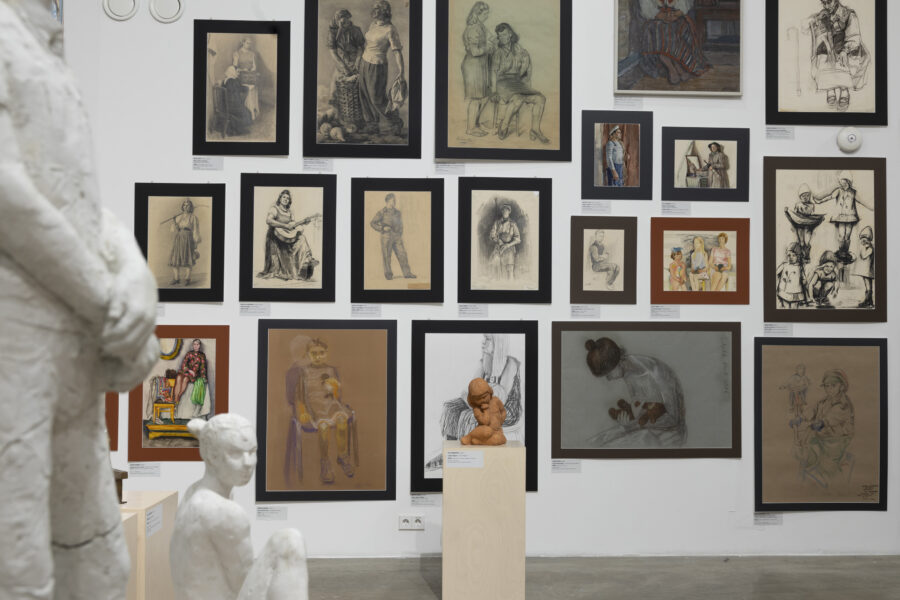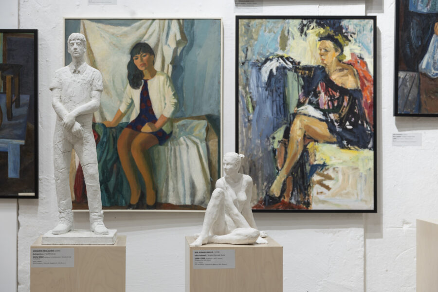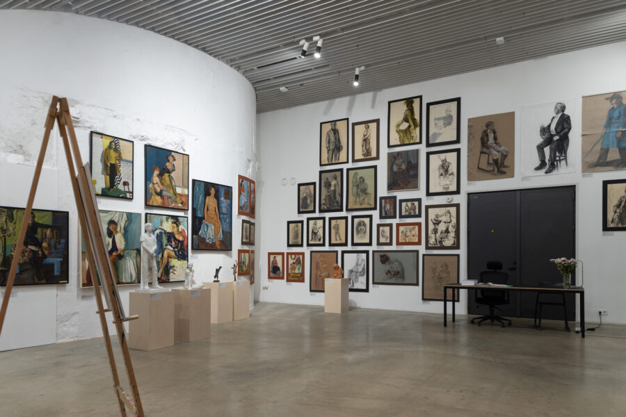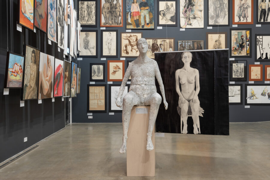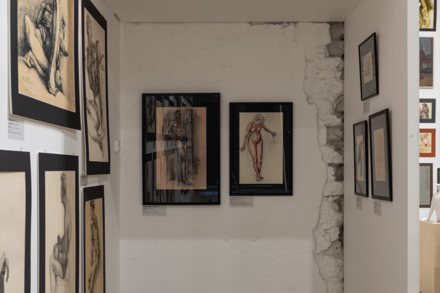 The exhibition primarily draws from the EKA Museum’s collection, although only a small fraction of the works accumulated over the decades could be included. To represent the early decades of the school’s history, additional pieces were sourced from the Art Museum of Estonia and private collections. Figure study has also been a central theme in sculpture. However, since the original collection of the sculpture department has been lost, curatorial efforts were necessary to locate works representing three-dimensional art. Despite being in the minority, sculpture is still represented in the exhibition. Additional works were requested from artists engaged in figure study during the early 21st century to cover the period between the conclusion of the methodological collection of works at the turn of the century and the establishment of the EKA Museum in 2019. As figure drawing has been an integral part of the curriculum across all disciplines at the academy, the selection process aimed to reflect this diversity.