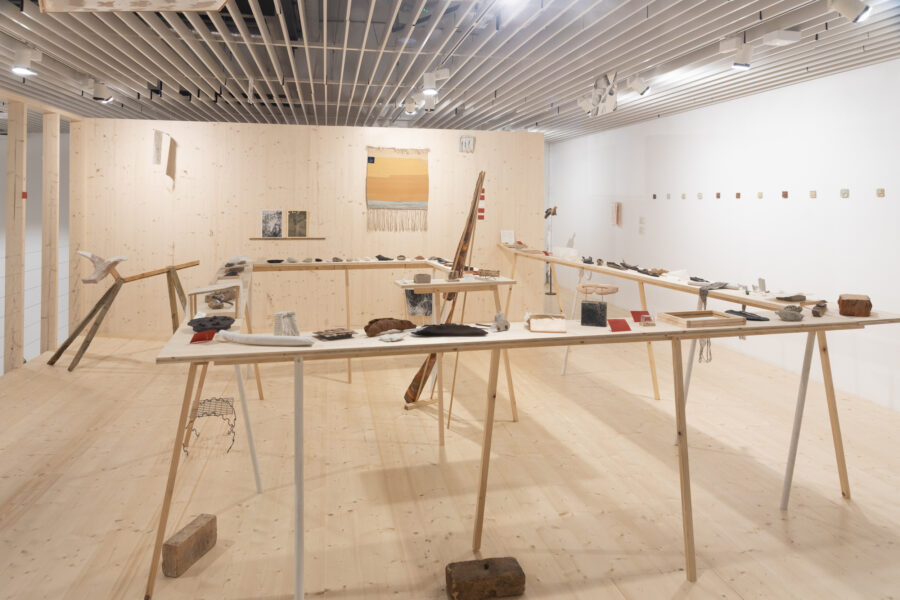 Eugenio Marini (IT) and Ingrid Helena Pajo (EE) are artists based in Tallinn and Rome. While both artists have individual artistic practices, they have been combining their backgrounds in sculpture and textile by collaborating regularly since 2022. Pajo’s works explore early textile technologies through gathering and weaving, trying to make sense of the experience of human life. Marini reflects on the idea and meaning of utility in today’s living. Found materials are an integral part of this shared journey of exploration, highlighting the importance of the path and the process, often encouraging improvisation.