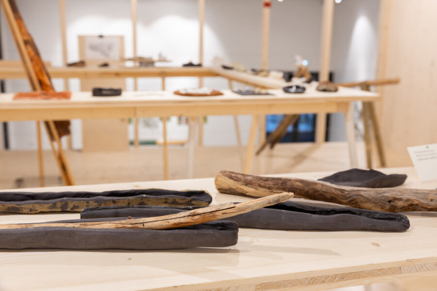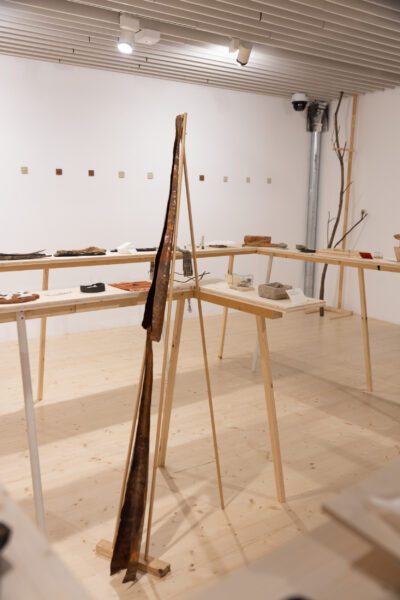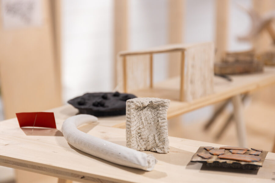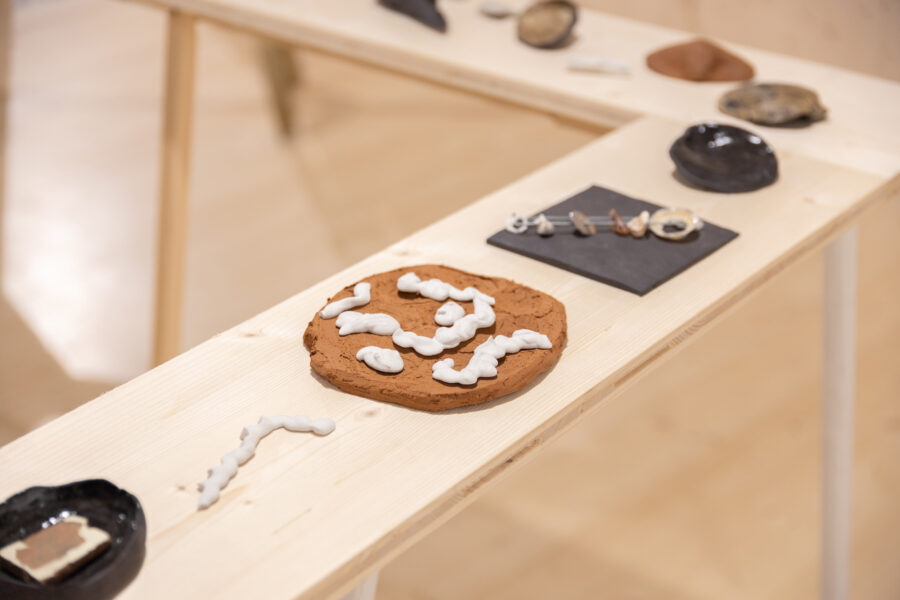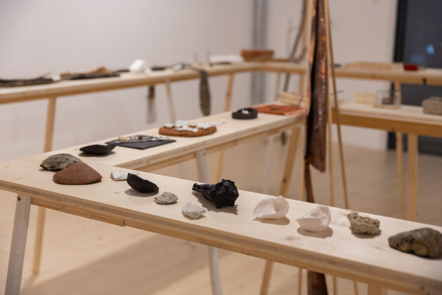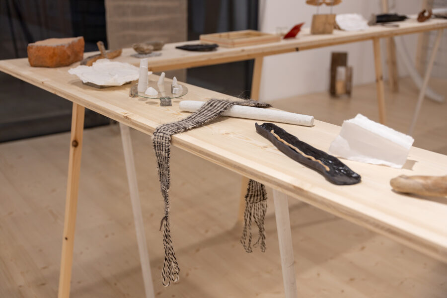 “The Day the Line Bent into a Spiral” brings together works, material experiments, and found objects created and collected over the course of nearly a year by artists Eugenio Marini and Ingrid Helena Pajo. The main principle for building this collection of fragments was to work with a single idea for no longer than a week—both in parallel and in collaboration. Another key aspect was the associative threads that emerged while working with the materials: allowing these to carry the artists along, and pausing from time to time somewhere in the middle of the process. While the material may suggest a direction, in the end each form speaks about the artists’ themselves and their temporary states. The exhibition becomes a kind of diary, written in an unknowable order, along curved lines. Now, the artists invite you to turn with them along this line—summoning memory, and rowing your way back to the starting point through the spiral labyrinth.