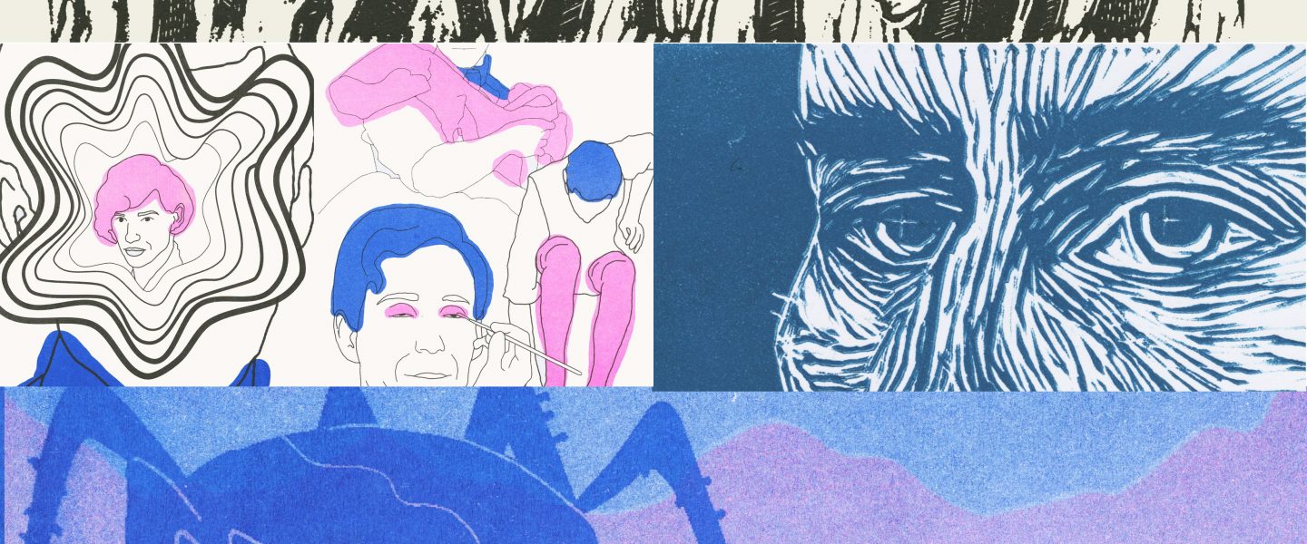 The comics in the exhibition are composed of works completed within the framework of courses Relief Print Comics (lecturer Mark Antonius Puhkan) and Visual Narrative (lecturer Ann Pajuväli). In the subject of relief printed comics, the historical roots of the cartoon medium were studied and at least one characteristics of comics was used in performing the work in relief technique. The result was unique linocut stories. The starting point of the picture narratives completed in the course Visual Narrative was the film chosen by the student himself. With this choice, various creative interpretations and retellings, carried out in the technique of risography, began to take shape.