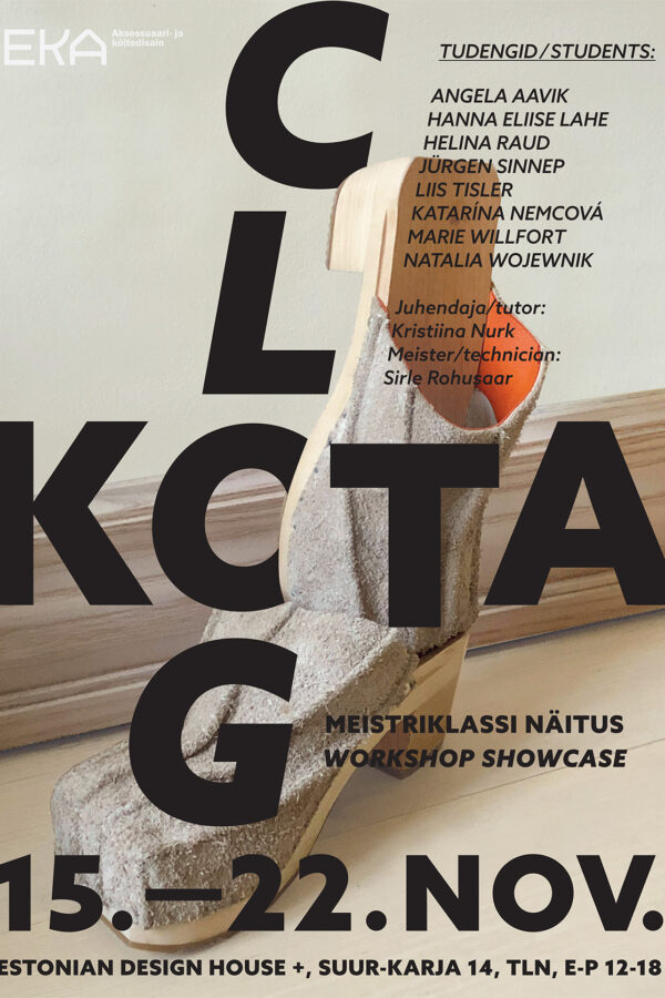 Exhibition of the fall semester’s one-week workshop “Clog—wooden soled sandals” by the Department of Accessory and Bookbinding, Estonian Academy of Arts. The students made their unique footwear out of recycled textiles and industrial leftovers or scrap materials.