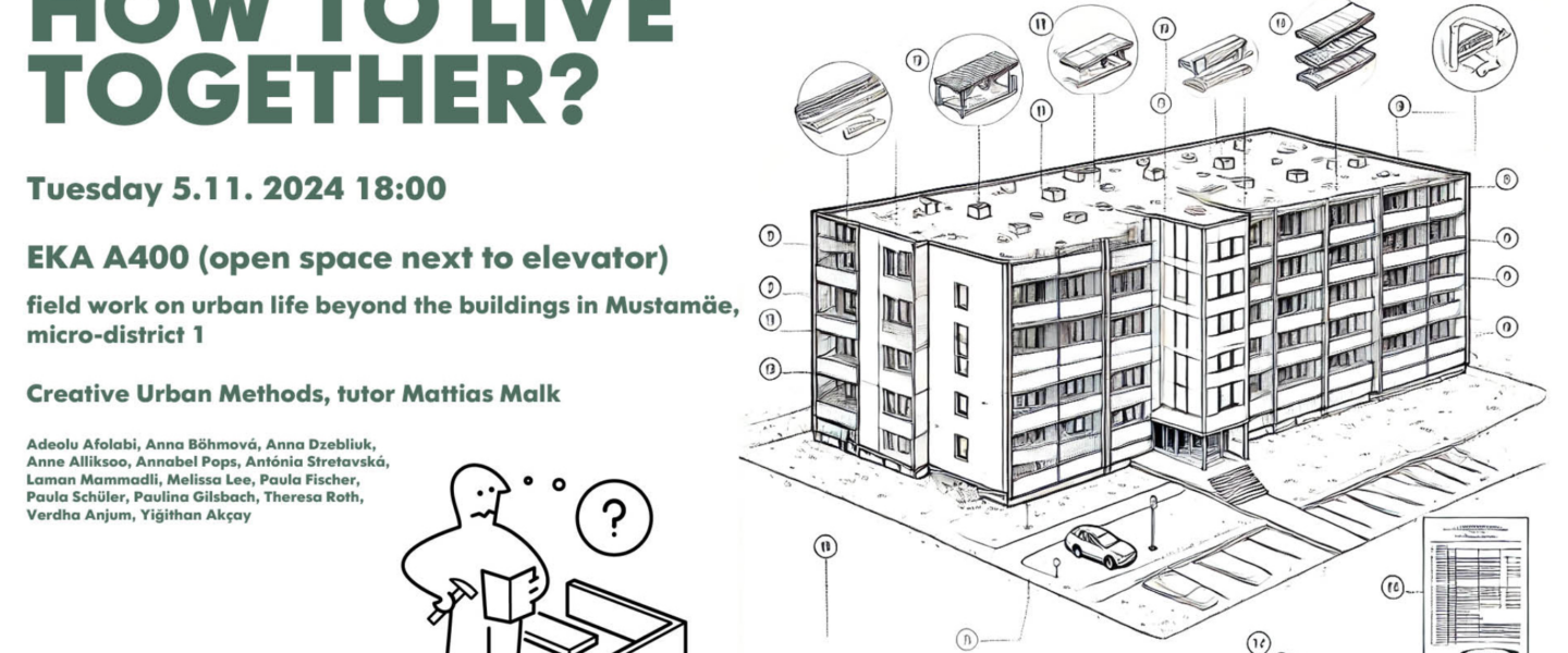 Urbanism year I students will present the results of their fieldwork in the Mustamäe I microdistrict. Guided by the question “How to live together”, the groups have investigated neighbours, neighbourhooding, conservation, and social housing among other interlinked topics.