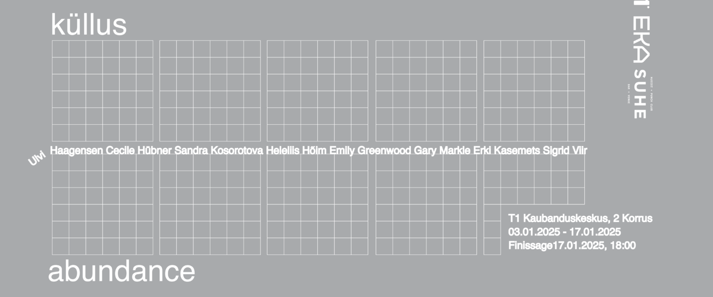 On Friday, January 3rd 2025 at 17:00 the group exhibition “Abundance” opens on the second floor of T1 shopping center (next to the central atrium).