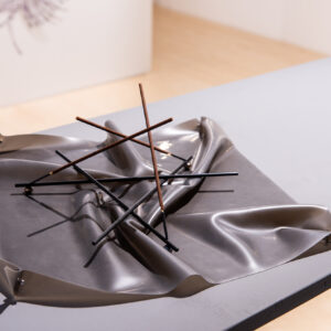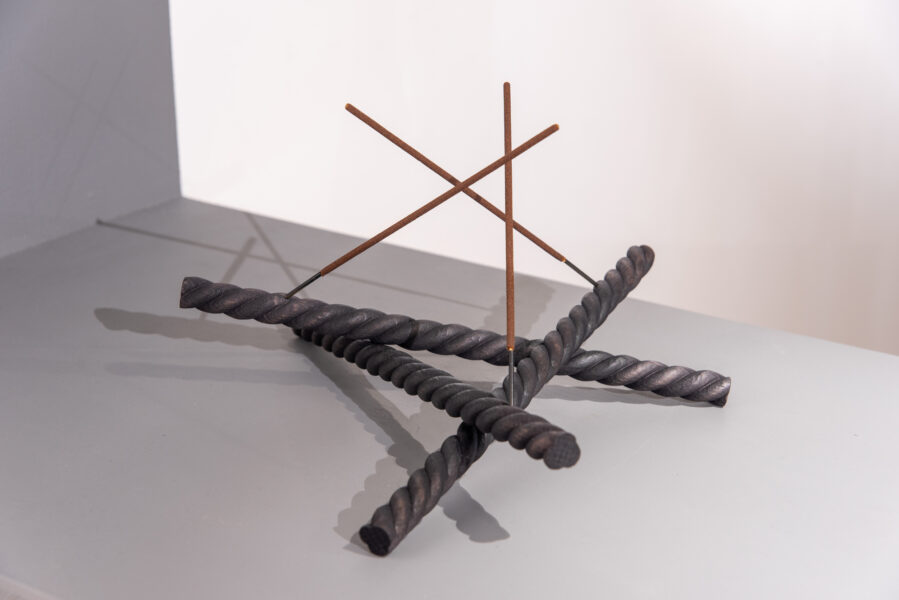 Hansel Tai, born in Mainland China and now based in Tallinn, has long focused on queer culture in the Post-Internet era. His award-winning project, “Nude Jade Pierced”, explored Chinese cultural identity through a queer lense, blending traditional symbols with subcultural aesthetic. In “Dance of Resistance”, Tai re-contextualizes traditional Chinese calligraphy and incense—both of which have found resonance in Western culture, from tattoo parlors to metaphysical shops. His work aims to challenge the appropriation of these cultural symbols, while reclaiming their significance from a queer perspective.