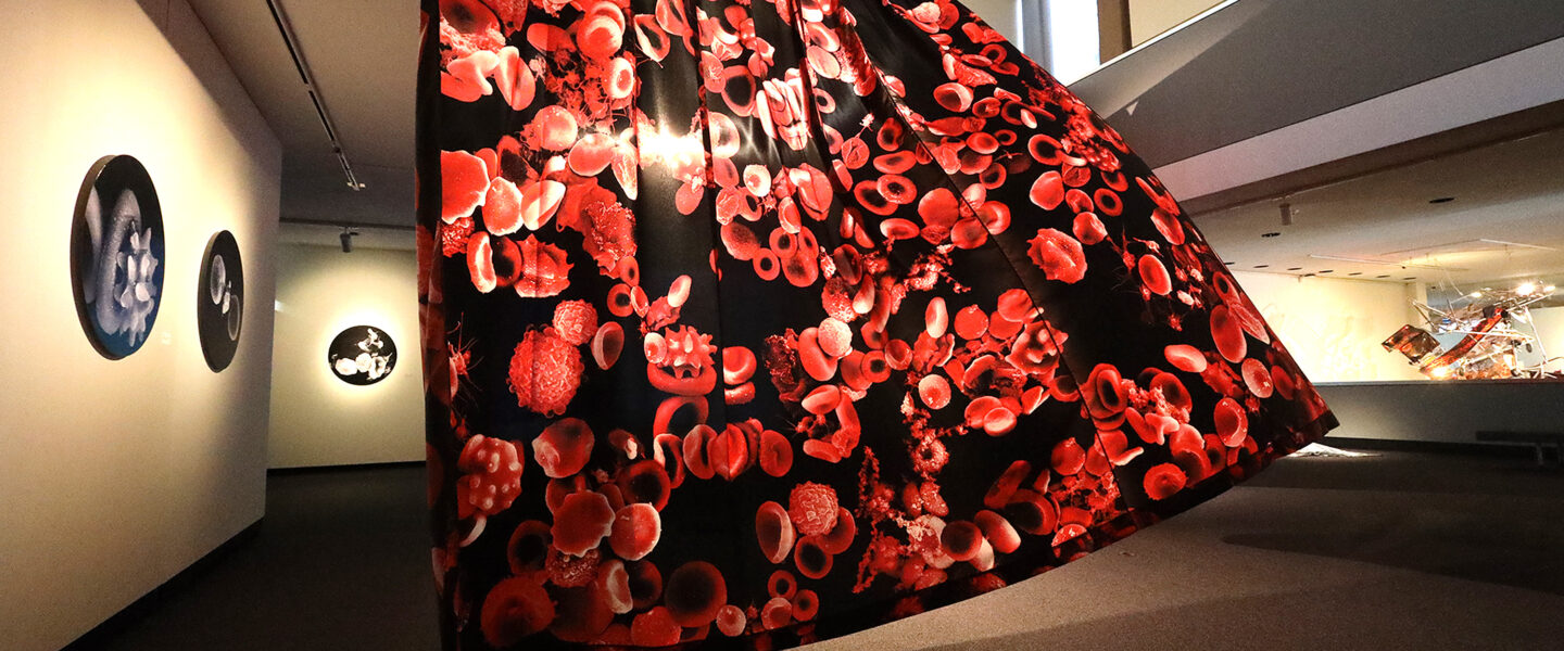 “The exhibition Blood and Breath, Skin and Dust focuses on interdisciplinary artist Kim Morgan’s research and artistic production using electron microscopy to explore materiality and the body. Informed by the experience of vibrant matter at the microscopic level these works offer encounters in human-scaled space and time, and an opportunity to bridge the gap between science, medicine, and art.” (Susan Gibson Garvey, Exhibition Catalogue).