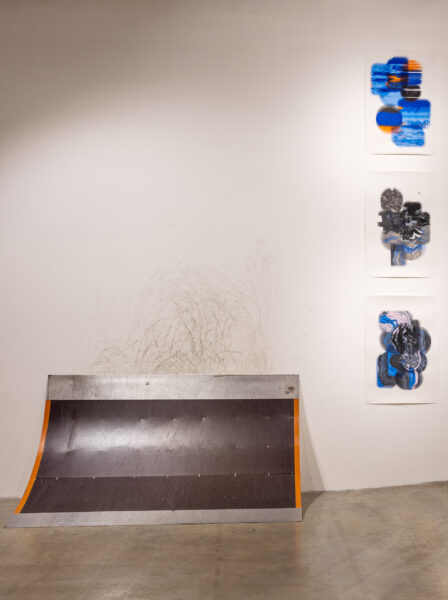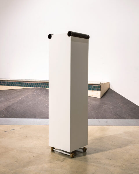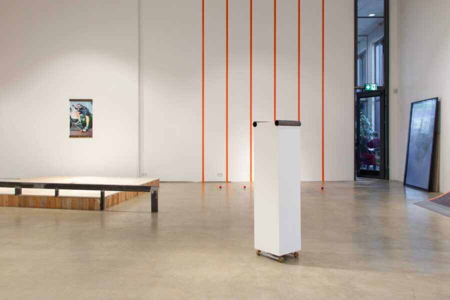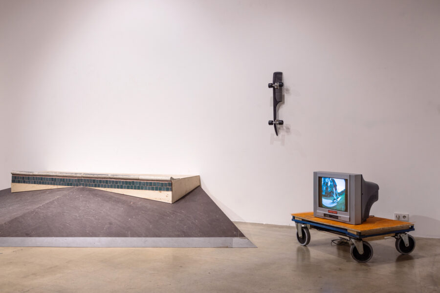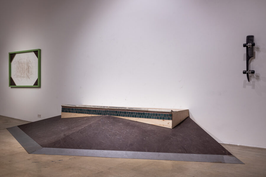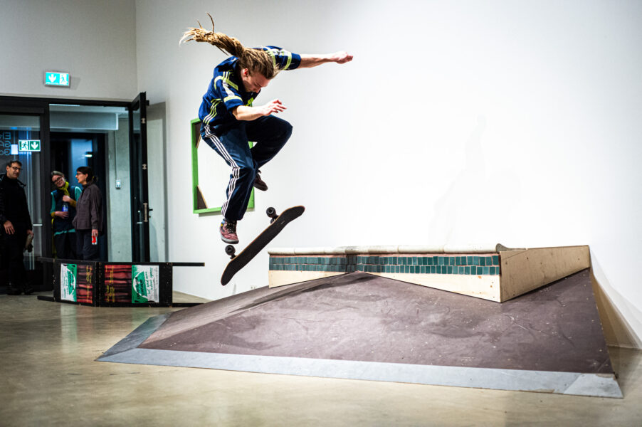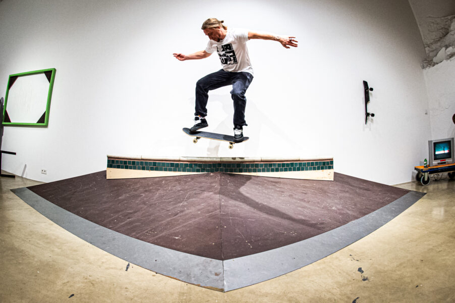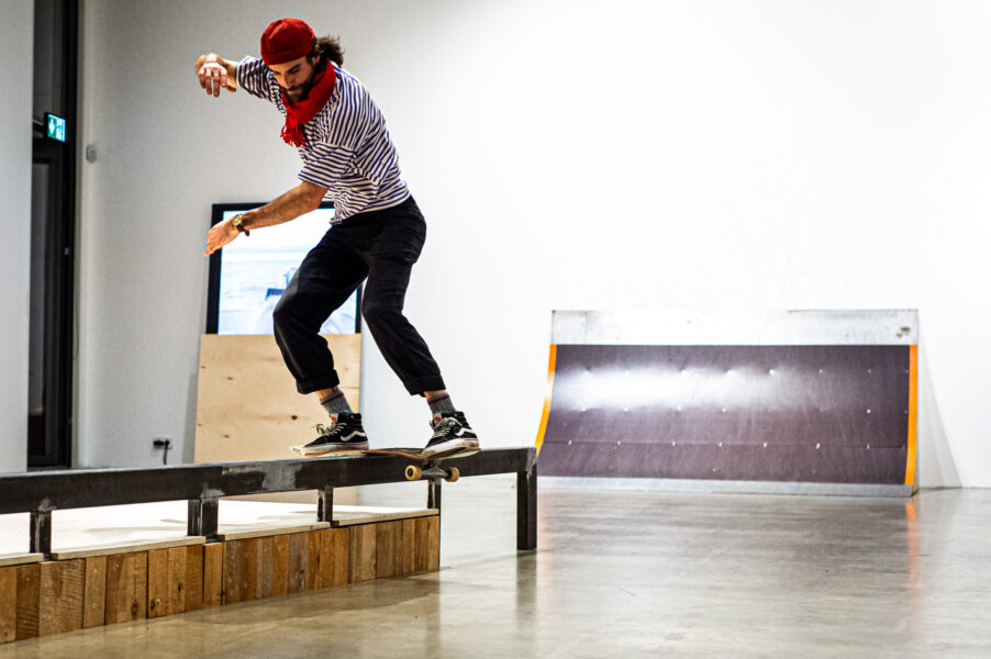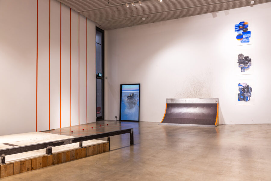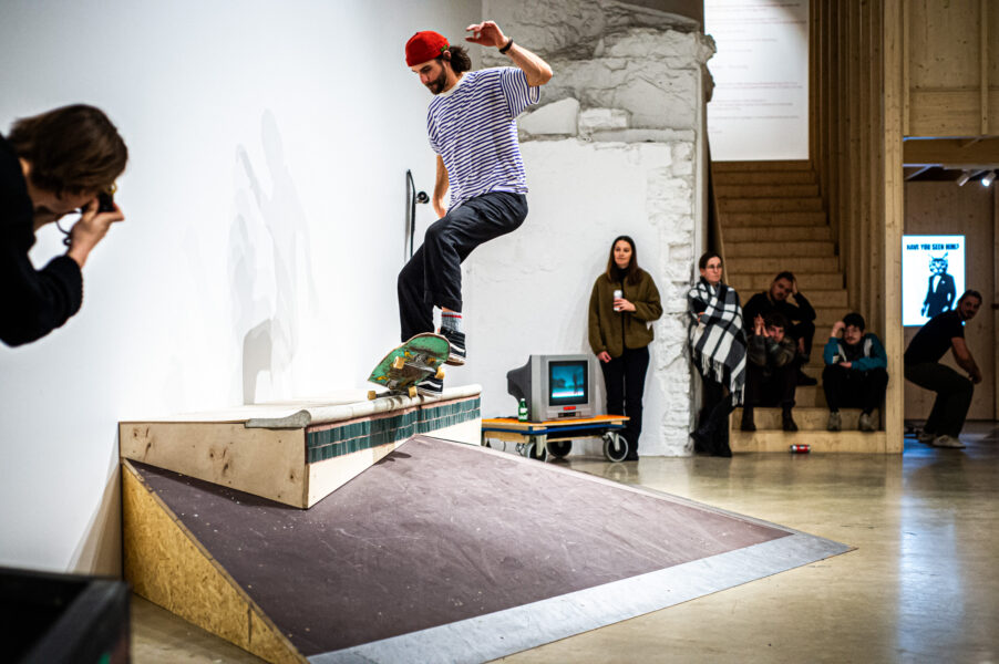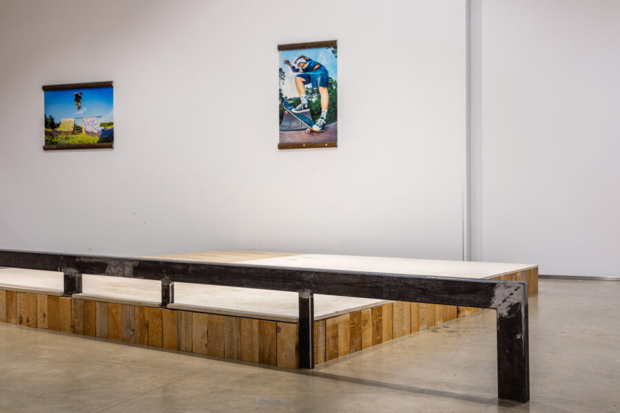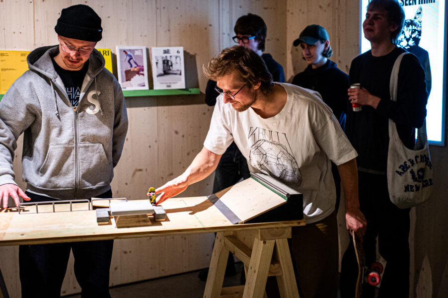 Jaagup Mägi and Éric-Olivier Thériault, two artists studying installation and sculpture at the Estonian Academy of Arts, came together with the idea of temporarily transforming the gallery space into a gathering hub in honour of the perseverant local skateboarding culture. Working within the constraints of the gallery, their aim is to demonstrate how skateboarding, as an artistic practice, parallels contemporary art in many ways: through experimentation, resilience, and a strong DIY ethos. The exhibition seeks to channel that energy into a broader conversation: What could happen if greater awareness of indoor skateparks was fostered? If these creative environments built by skateboarders for skateboarders were more actively supported?