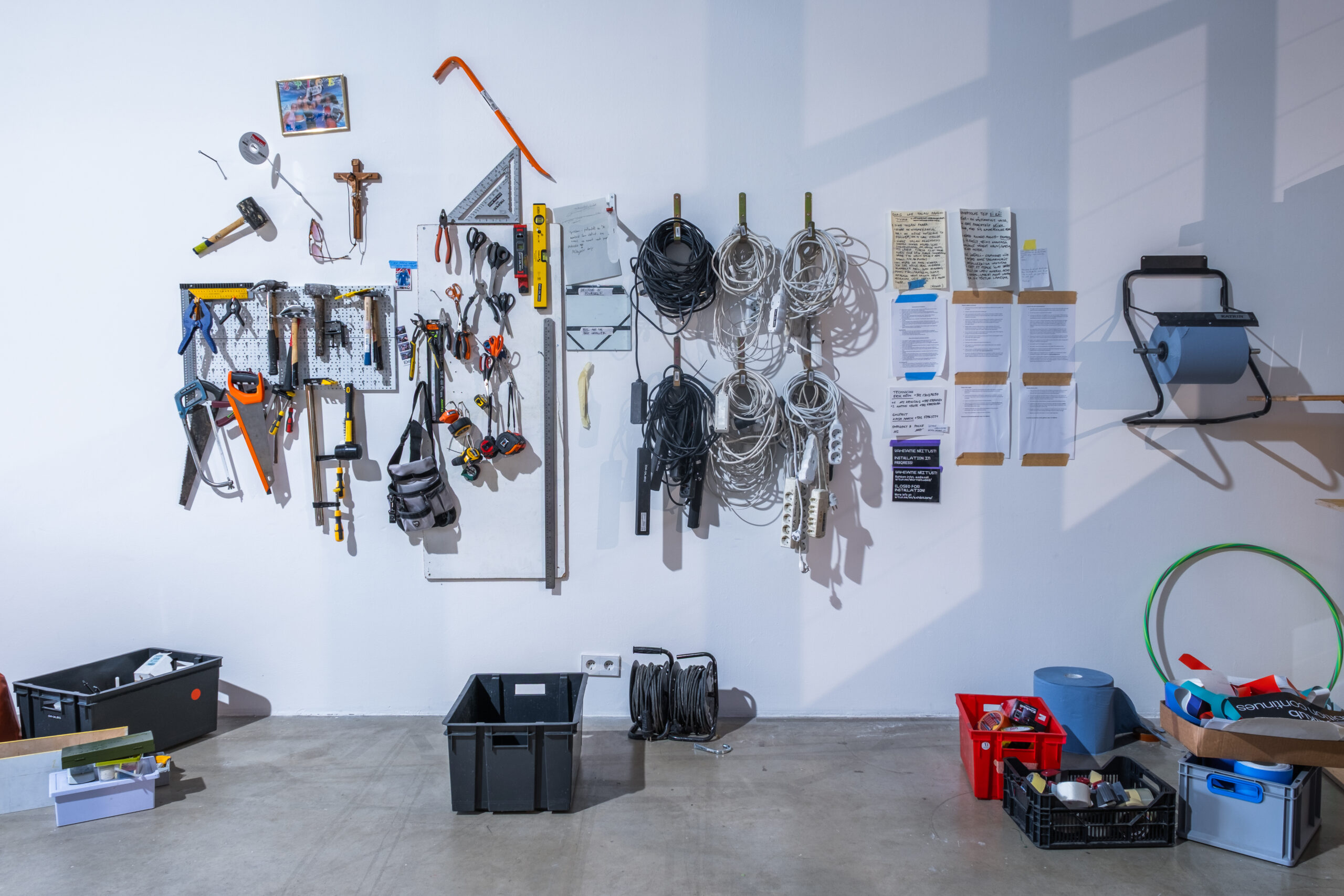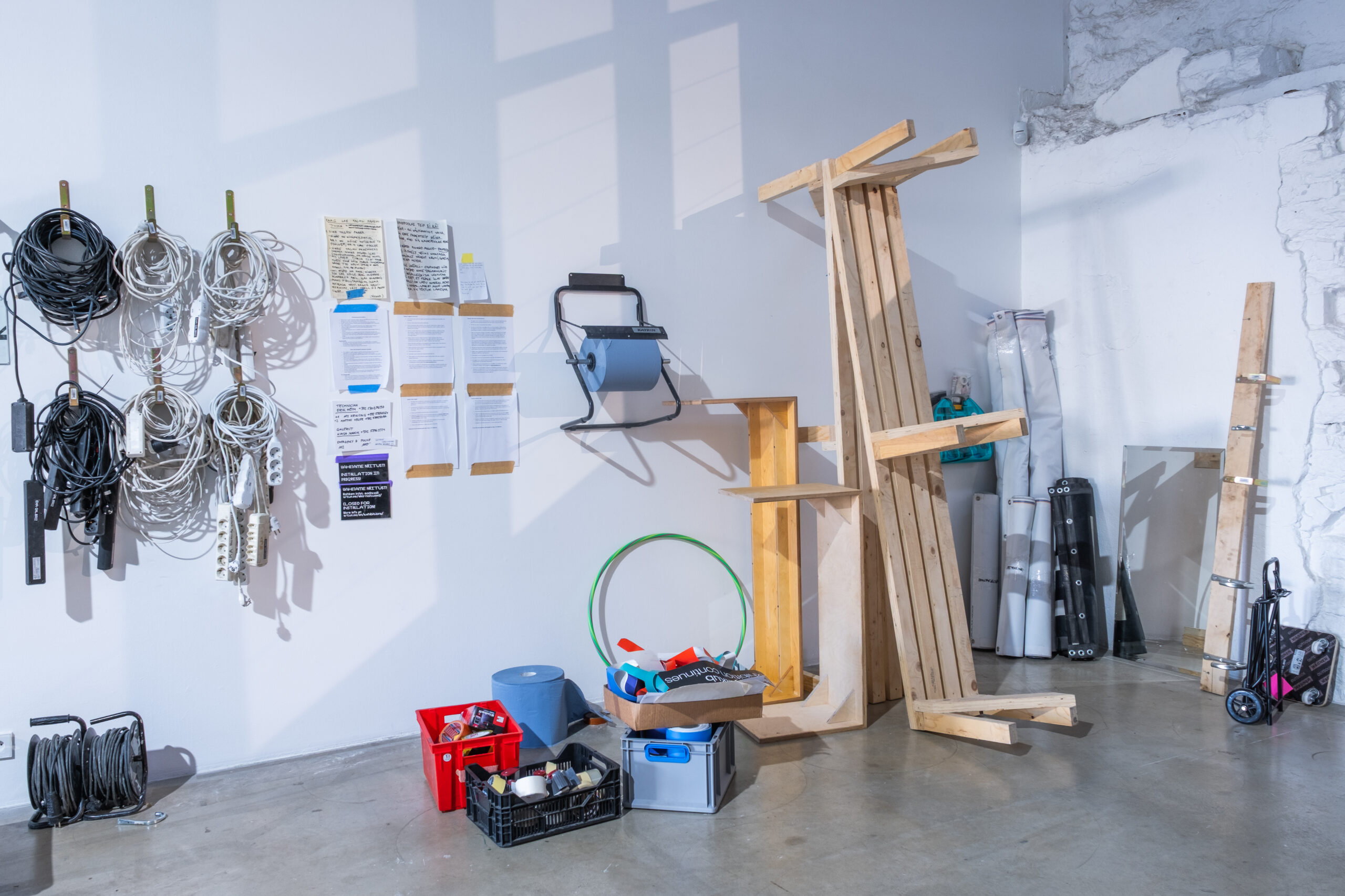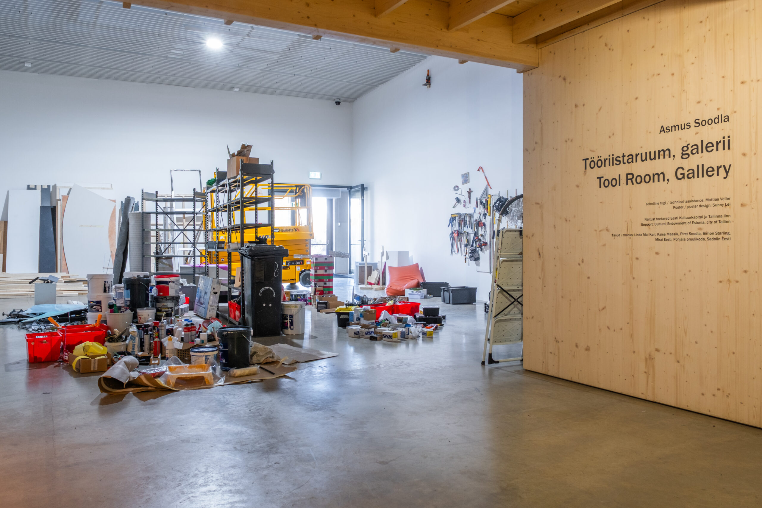 Asmus Soodla’s exhibition “Tool Room, Gallery” focuses on the art gallery as an ecosystem, where value-based distinction between the result and the process doesn’t exist. The conceptual starting point of the project is the internal conditions and work processes of the gallery as an institution, as well as its spatial logic. The exhibition focuses on activities that are usually hidden from the visitor’s gaze, but which play a decisive role in how the artwork and the viewer meet.