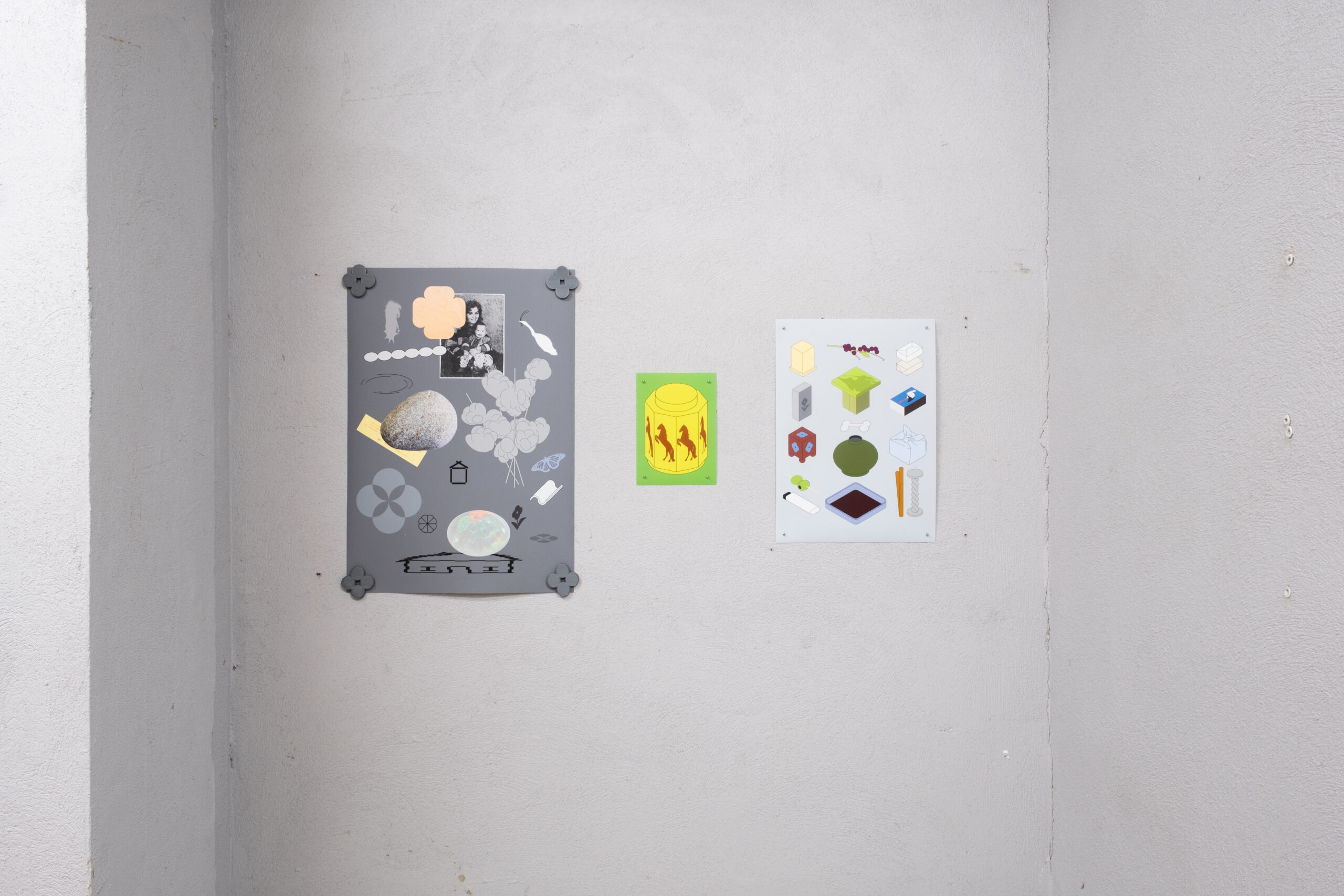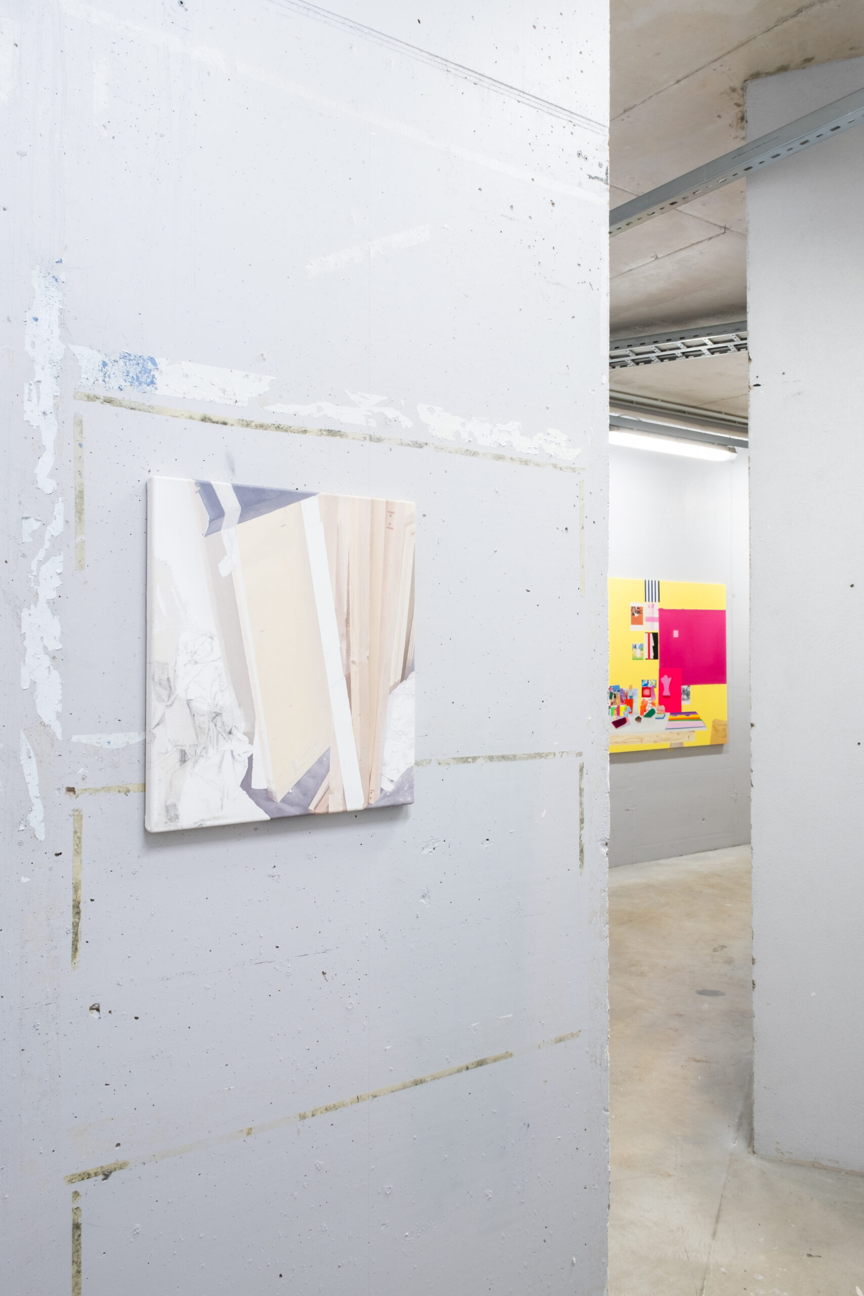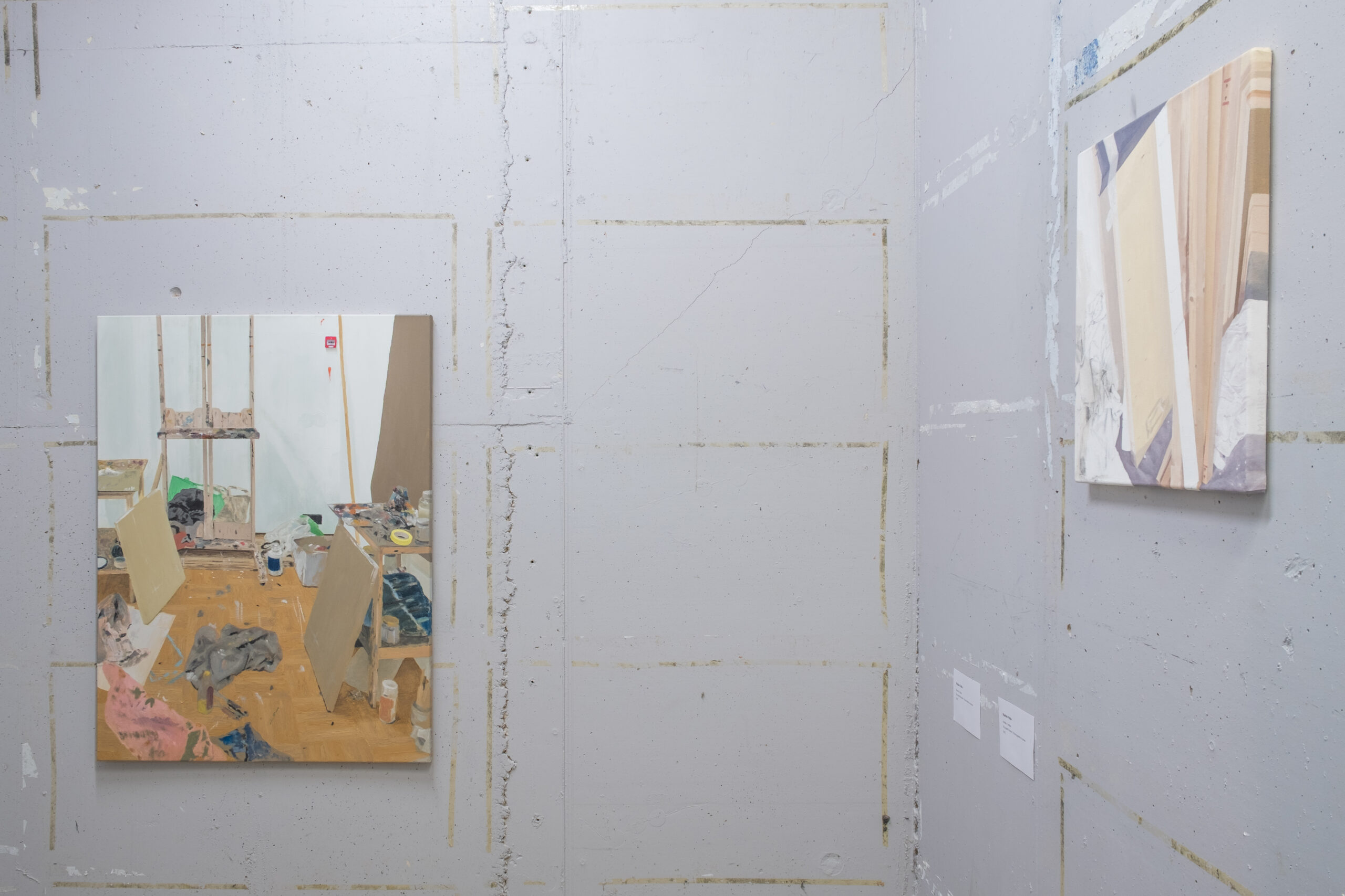 The narrow and cramped architecture of EKA Gallery’s storage space brings the viewer closer to the works and their details. Together with the unusual exhibition space, the works form a new spatial whole in which different visual languages and perspectives can meet and merge.