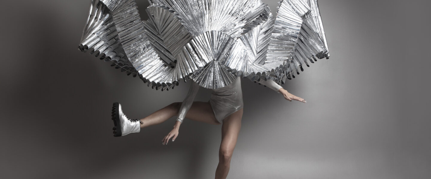 The Sustainable Design and Material Lab exhibits practical examples of textile waste circularity, based on local upcycling, industrial upcycling and recycling design methods. The QUICK SILVER experimental design project series main goal is to inspire fashion, textile and accessory design students to make art from the most unexpected materials, turning, for instance, leftover metallic ice-cream packaging, discarded marine rescue equipment, thermal bags, ropes, life jackets etc into sculptural fashion design and design items. The two projects came together to investigate how designers can contribute to emotional durability instead of creating more durable waste. Additionally, the first phase of the research project Repair and Regenerative Textile Design by Marta Moorats, investigates and shows the concept of repair, and the experimental tableware designed and prepared in a sustainable manner for the restaurant of Tallinn Fotografiska museum by the students of ceramics, glass, jewellery and blacksmithing departments of the Estonian Academy of Arts, are shown.