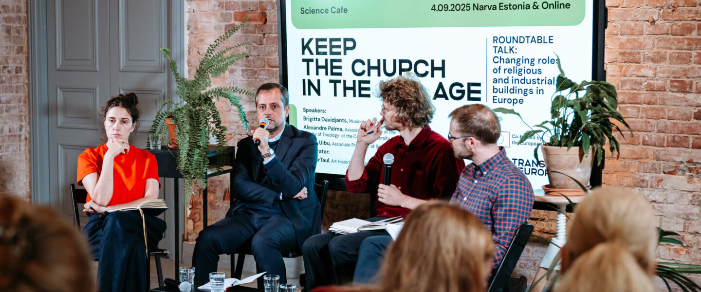 On 4 September, as part of the Station Narva festival, the Estonian Academy of Arts hosted a Science Café at the Narva Art Residency (NART), focusing on the changing role of religious and industrial buildings in contemporary Europe. The discussion, titled “Keep the Church in the Village. How to Make Use of Heritage?”, brought together experts and audiences both on-site and online. Students from across Europe also tuned in via the Transform4Europe (T4EU) YouTube channel.