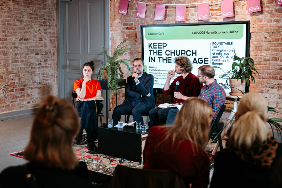 On 4 September, as part of the Station Narva festival, the Estonian Academy of Arts hosted a Science Café at the Narva Art Residency (NART), focusing on the changing role of religious and industrial buildings in contemporary Europe. The discussion, titled “Keep the Church in the Village. How to Make Use of Heritage?”, brought together experts and audiences both on-site and online. Students from across Europe also tuned in via the Transform4Europe (T4EU) YouTube channel.