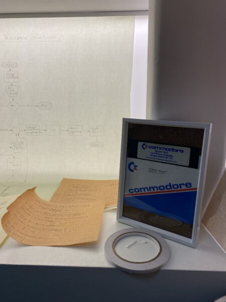 An old forgotten suitcase was found in the Estonian National Archives. It was given to the LVLup! Videogame Museum hosted at the National Library. The suitcase contained sketches and other materials of an unfinished video game called “Red Wave” produced in the 1980s. The game production was halted due to its complexity and unavailable technology at the time. Fortunately several artefacts from its development were identified and are exhibited at the Estonian Museum of Applied Art and Design.
