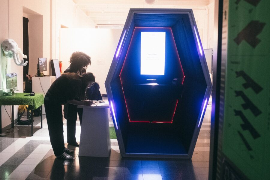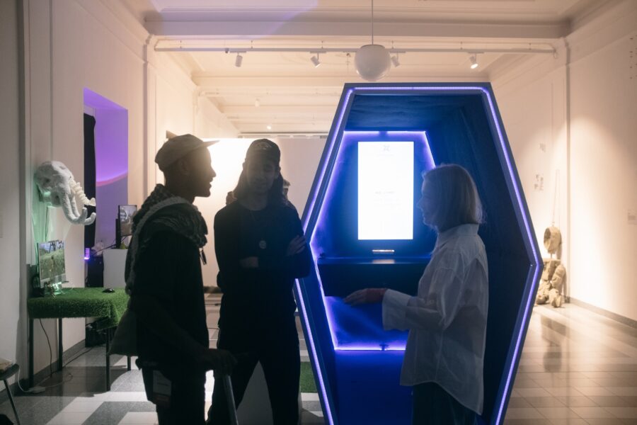 EKA students won the grand prize at the festival’s Campus exhibition for their work “Threshold State,” an interactive installation. The installation, depicting a futuristic border point, explores how surveillance and artificial intelligence affect people’s privacy, identity, and agency in the digital age. The authors of the installation are Erik Lond, Tõnis Bender, Ezgi Okka, Mia-Mai Roosberg, Luiza Stibe, Paul Pank, Karl-Alder Kuivjõgi, students of EKA’s Industrial and Digital Product Design and EKA’s Interaction Design. The supervisors were Ottavio Cambieri, Carol Tikerperi, Tanel Kärp and Björn Koop.