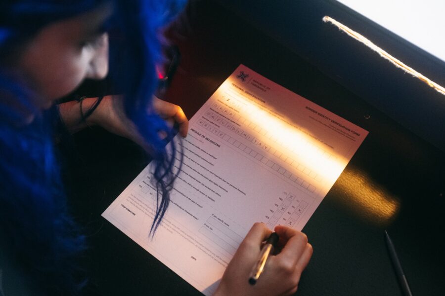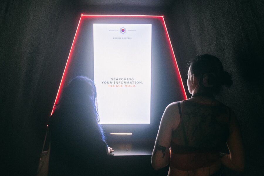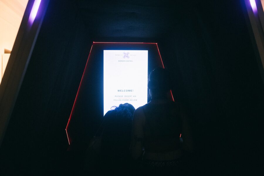 According to Ottavio Cambieri, one of the supervisors of the work, “visitors to the exhibition try to enter a fictitious country called “Threshold State” and fill out a standard border crossing form, which is then scanned and generated by artificial intelligence based on the visitor’s online footprint. Depending on the indicators, entry is either allowed or denied.” Cambieri adds: “we want to know what risks lie in the bias of artificial intelligence and the granting of decision-making power to technology; what does the digital content shared, both intentionally and unintentionally, say about us, and what happens when our digital profile meets a state apparatus whose values are at odds with ours?”