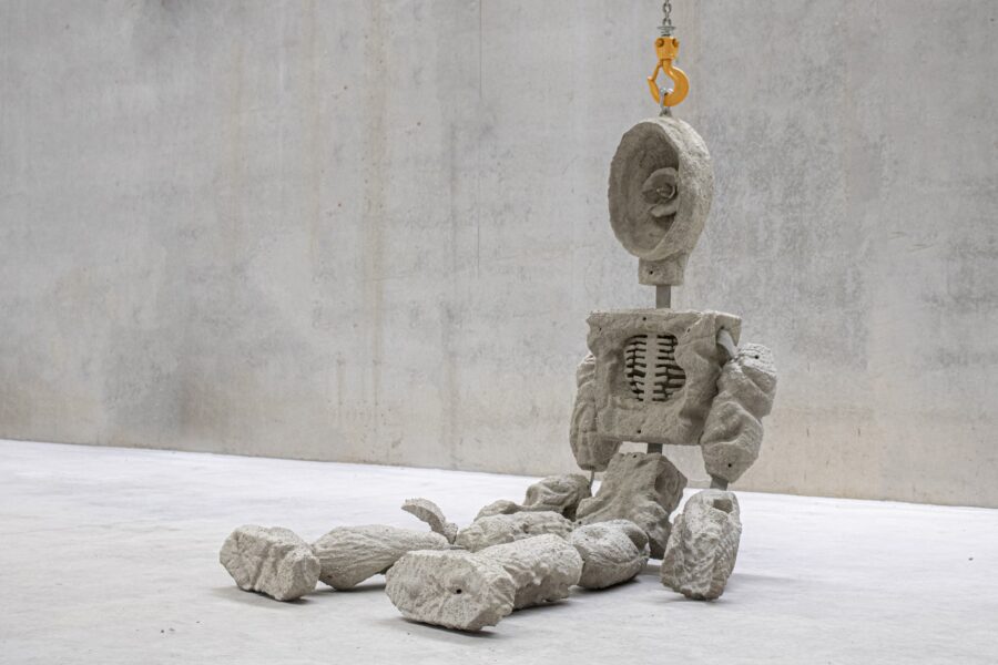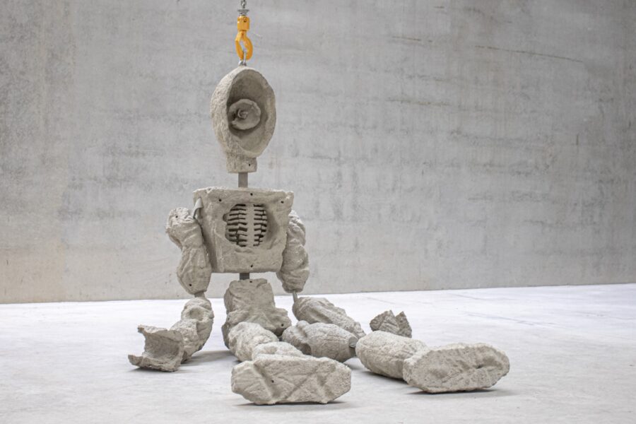 Rigged is a clock‑ticking marionette, which hangs from one chain while a 4 K film loops its fall, folding time, gravity, and Memory. Rigged by Bob Bicknell-Knight is a human-scale sculpture exploring control, time, and decay. Suspended by a single chain, the marionette-like figure has a hollow head with a ticking, lily-shaped clock and exposed ribs inspired by a childhood tree. Merging digital and physical forms, it evokes themes of helplessness, memory, and the passing of time through playful yet haunting references to toys, video games, and mortality. Artist/ Student: Bob Bicknell-Knight (Estonian Academy of Arts, Contemporary Art MA) Supervisor: Camille Laurelli (Estonian Academy of Arts, New Media) Technical support: Hans Gunther Lock (Estonian Academy of Arts, New Media) Project manager: Kaia-Liisa Jõesalu (EKA)