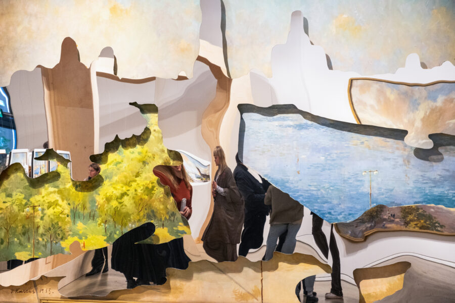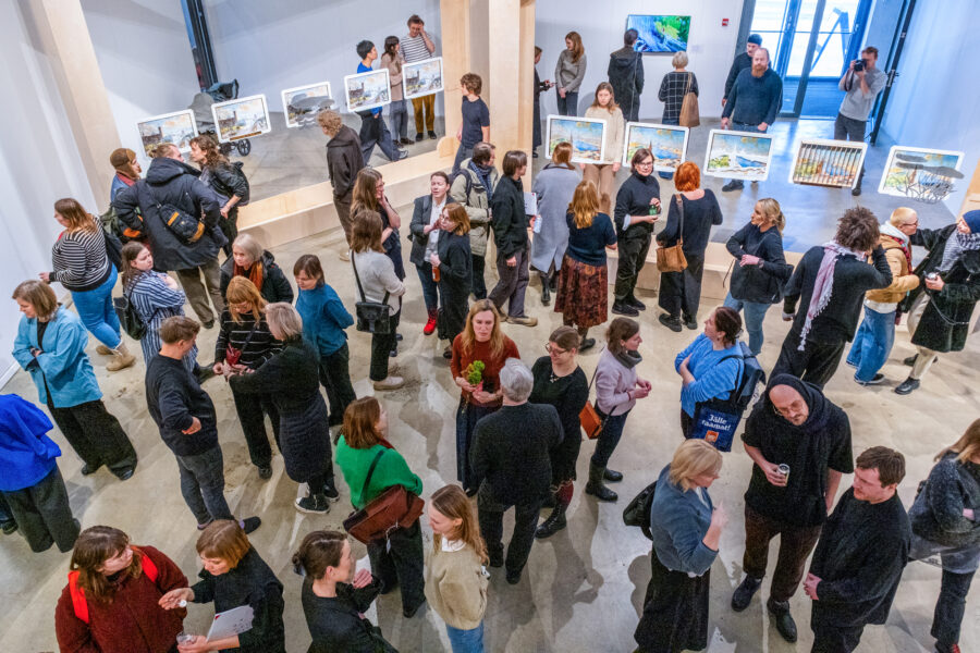The exhibition “Image Is for Illustrative Purposes Only. Interventions in the Monumental Murals of the Old Airport Terminal’s Central Waiting Hall at Tallinn Airport” was opened at EKA Gallery on Friday, February 20, 2026.
