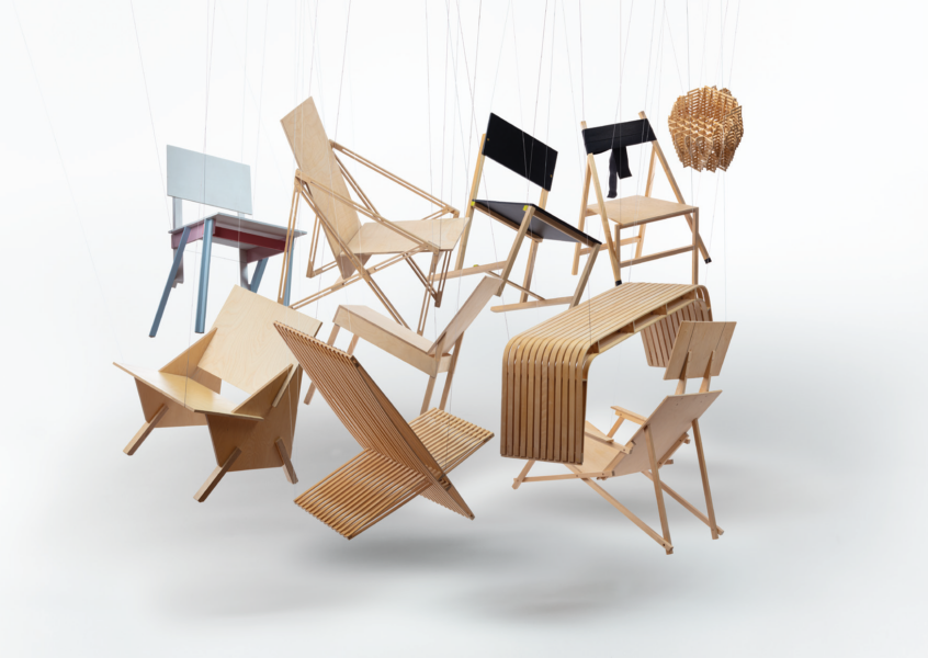 Each year students of architecture and interior architecture learn to do less with more. They build a chair with limited wood material, one that carries their bodies and intentions. Lightness emerges through restraint, clarity, and responsibility. This exhibition brings together ten years of chairs, revealing lightness as a balance between gravity, material, and imagination.