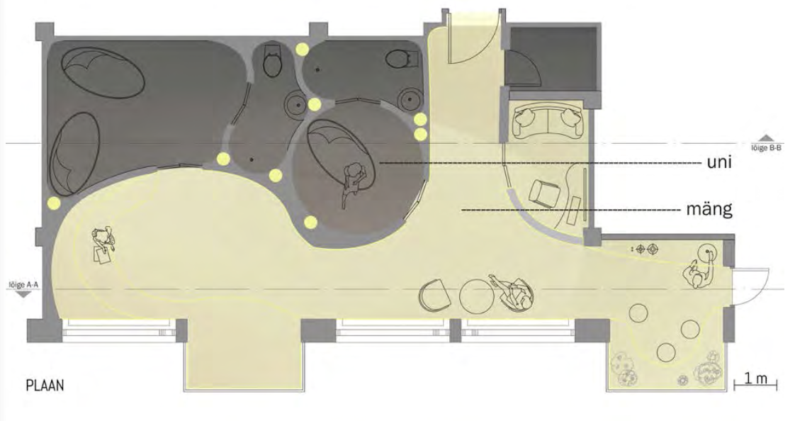 Tüüne-Kristin Vaikla: “Dreams are part of our uncontrollable selves, and sleep debt is a familiar topic to students from their university days, which inhibits creativity and inspiration. By studying sleep architecture through personal experience, one can discover the interaction and interaction between people and space, where practical solutions are supplemented by theoretical stratification. With the children’s sleep study project, we sought broader knowledge – how a space could support the sleep of a restless sleeper.”