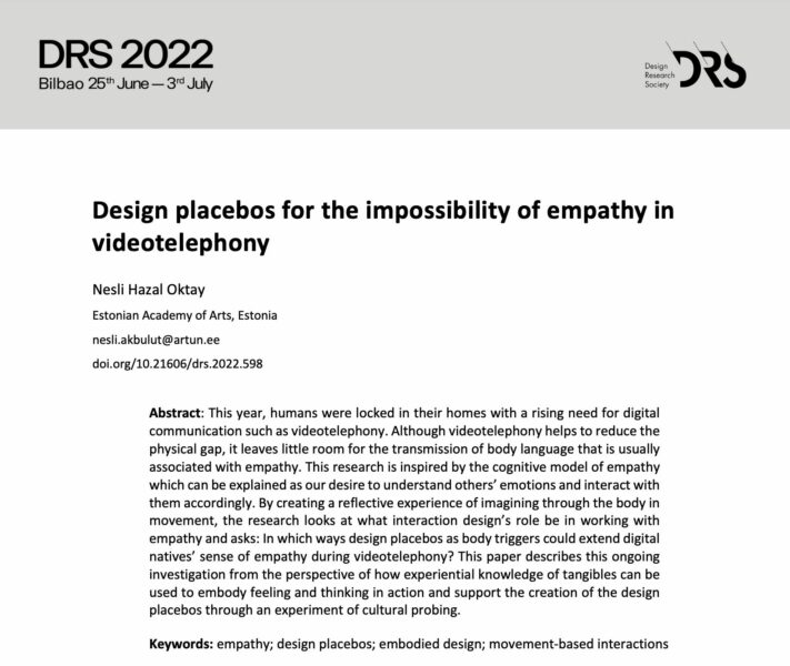 While continuing her journey at the Estonian Academy of Arts as a design educator, Nesli is also studying at the Academy as a doctoral student. Her research interests include embodied, participatory, and speculative approaches to design. At DRS2022, she published her paper in the track: “Embodying experiential knowledge” which presented her ongoing doctoral research from the perspective of how experiential knowledge of tangibles can support the creation of the design placebos through an experiment of cultural probing. Her paper is accessible at https://doi.org/10.21606/drs.2022.598.