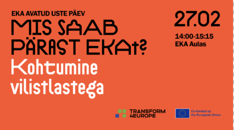 The event is open to artists, designers, EKA alumni, graduate students and creative practitioners interested in artistic research methods and postgraduate studies.