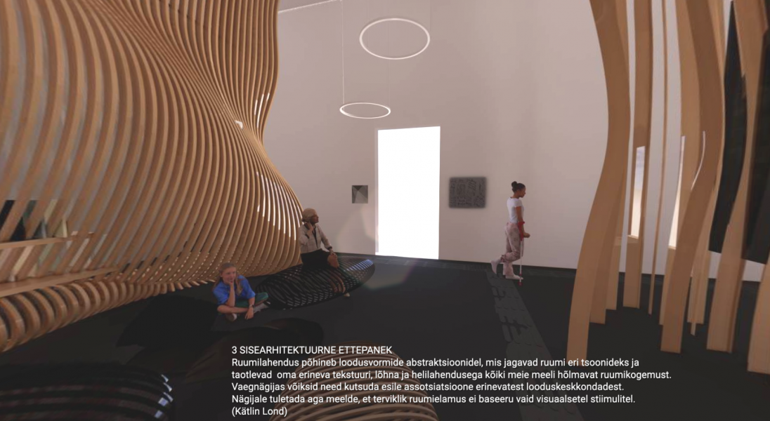 The students of the 2nd year of the bachelor’s study in interior architecture focussed on creating inclusive exhibition spaces, tutored by architect Johanna Jõekalda. The task of the students was to design an exhibition space based on what they had learned, which would take into account visitors with different special needs to the maximum.