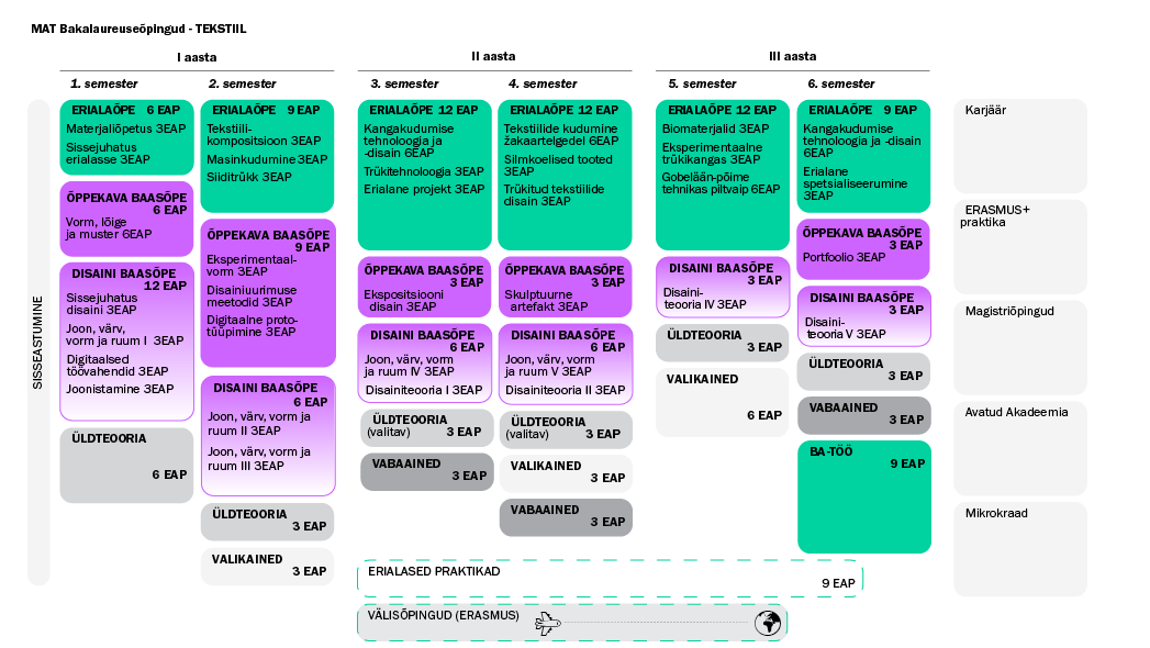 Tekstiilidisain on üks kolmest erialast (õppesuunast) BA-taseme ühendõppekaval “Moe-, tekstiili- ja aksessuaaridisain” (MAT).