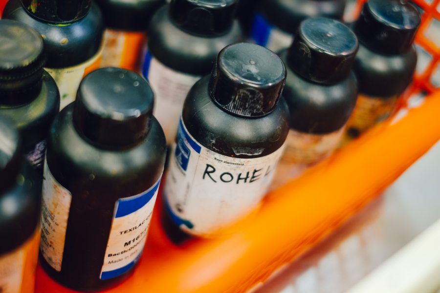 Õppetooli juhtkonna tööruum. Personaliruumis on ka hoiul mitmed heli- ja videoseadmed, mida saab kokkuleppeliselt kunstiprojektide teostamiseks laenutada.
