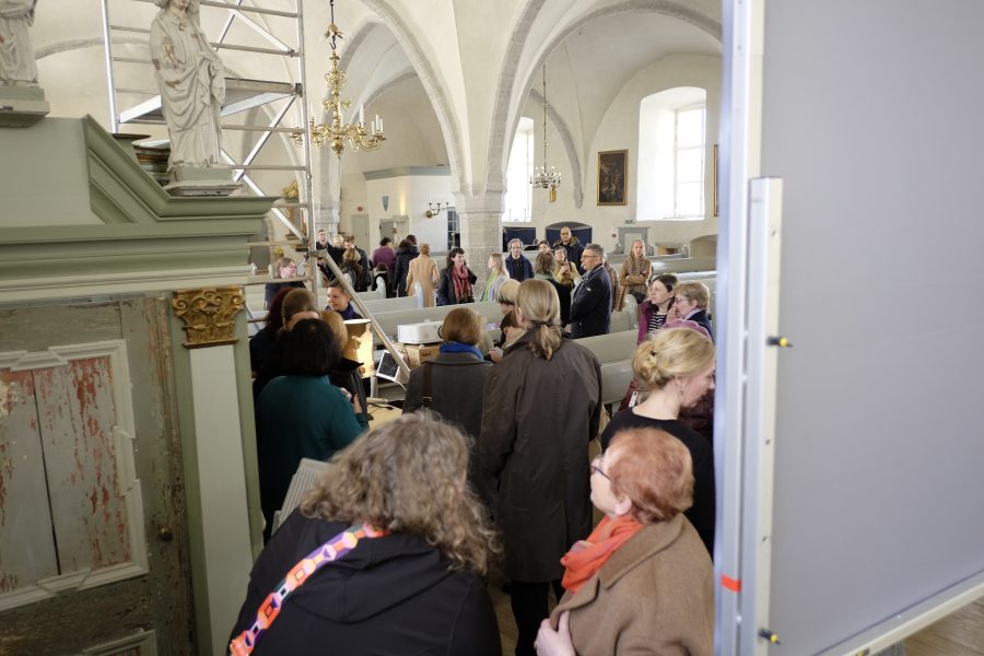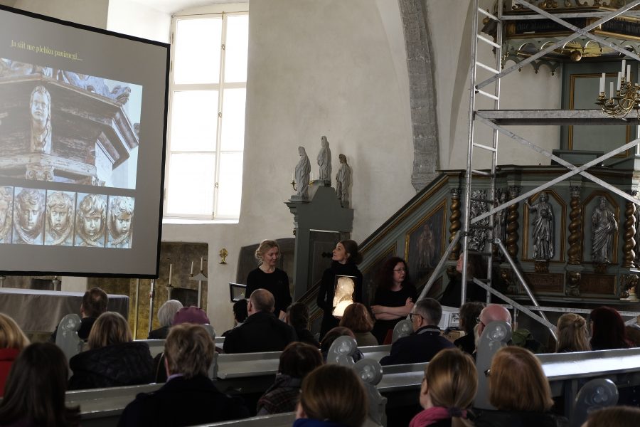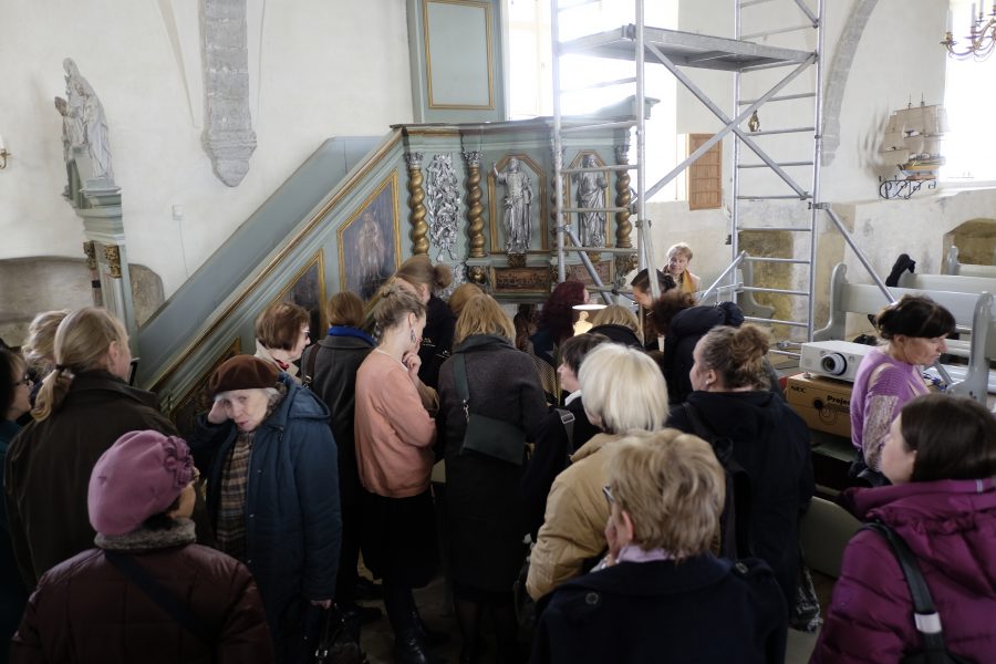 Kirikusse oli paigaldatud ka tellingud, et pääseda ligi kantsli kõlaräästa skulptuuridele.