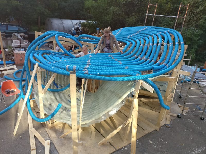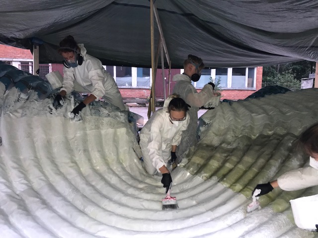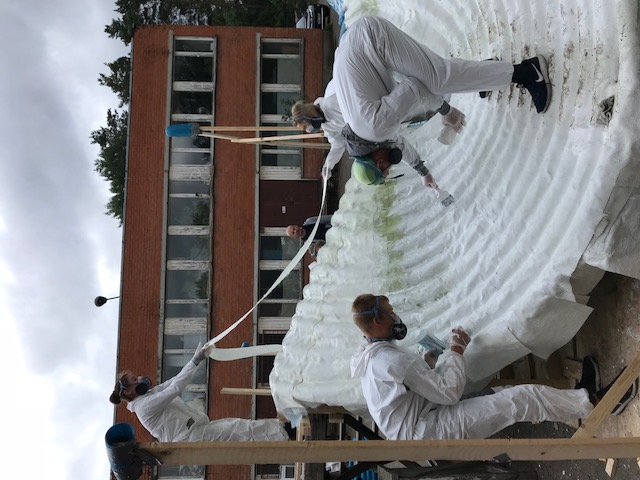 Ehituspraktika algas augusti keskel. Selleks ettenähtud viiest päevast kujunes kolmekuune sõit ameerikamägedel. Peaaegu kõik peale lõpptulemuse kujunes oodatust väga erinevaks, alustades kuluvast puidukogusest lõpetades polüestervaigu temperatuuritundlikkusega. Ilmast sai ehitusprotsessi suurim vaenlane, materjal ei talunud ei päikesepaistet ega vihma, inimesed aga ei talunud gaase, mis kogunesid vihma ja päikest varjava ehitise kohale asetatud koormakile alla. Peamiselt ilmastiku tõttu oli ehitusprotsess pingeline ja kurnav, kuid tänu koostööle ning ühisele eesmärgile kulus klaasplasti lamineerimisega valmis saamiseks vaid kaks korda rohkem päevi kui arvestatud. Seejärel tundus finaal juba käega katsutav.