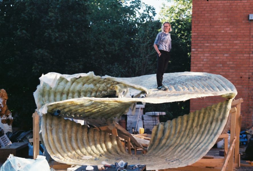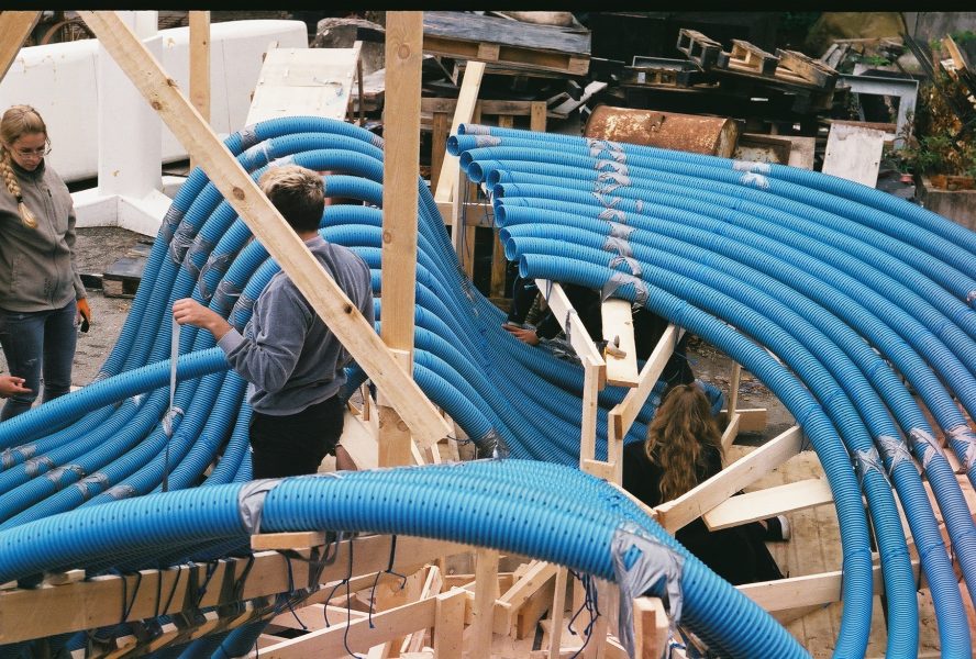 Kuna klaasplasti valmistamise tehnoloogia näeb ette, et klaaskiudmatt asetatakse vormi ning matt immutatakse läbi polüestervaiguga, seisis ees järjekordne katsumus – välja mõelda, kuidas ehitada vorm klaasplasti lamineerimiseks. Võimalusi oli mitmeid ning vahepeal hakkas tunduma, justkui projekteeritaks kaht eraldiseisvat varjualust. Ajapikku kujunes välja lahendus, mis annab tudengitele võimaluse praktiseerida nii traditsioonilist puutööd kui ka klaasplasti lamineerimist. Nimelt otsustati ehitada kogu varjualuse vorm taaskasutatavatest puitlaudadest ning drenaažitorudest, katta kogu rajatis kilega ning lamineerida klaasplast kilele. Lihtsalt kõlav lahendus osutus aga ülimalt eksperimentaalseks ja esitas palju väljakutseid kõikidele ehituspraktikal osalejatele.