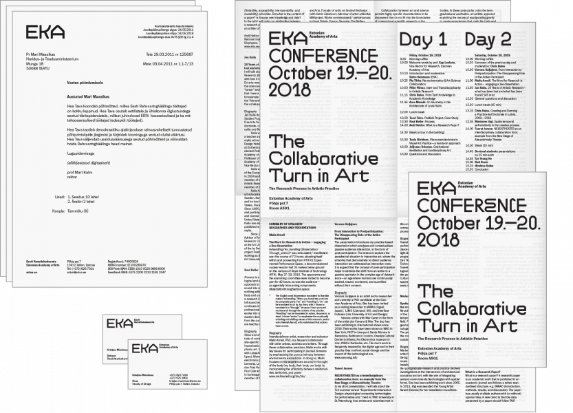 Värve ei kasutata koos: ühe väljundi puhul on kasutusel ainult üks taustavärv. Ühe ürituse raames tehtud kujundused kasutavad läbivalt sama taustavärvi (nt kogu EKA Avatud Uste kommunikatsioon on rohelise taustaga). Infotrükised võivad olla ka ilma taustavärvita ja mustvalged.