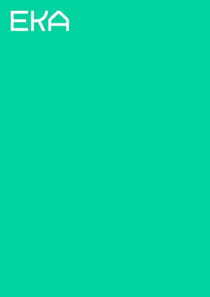 Nurgas asuv logo moodustab kujunduses talle järgneva põhisõnumiga ühtse terviku, kus “EKA” on teksti esimene rida. Tekst ja logo on alati samas suuruses.
