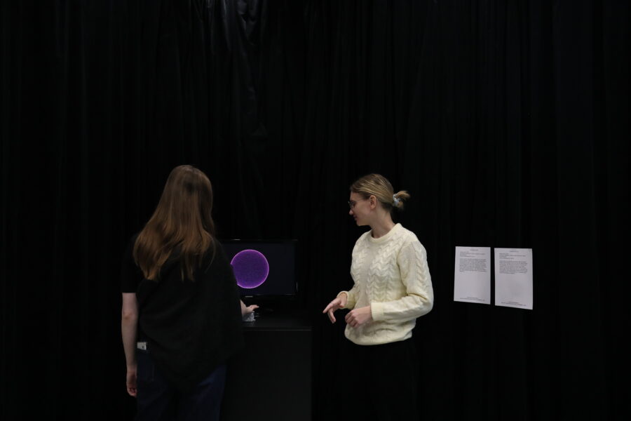 Selle tulemusena täitusid sügissemestri lõpuks EKA kolmanda ja neljanda korruse avaalad interaktiivsete teostega. Kolme kuu jooksul, 2025. aasta septembrist detsembrini, oli ülesanne selge: luua digitaalse loomuga interaktiivne kunstiteos. Mitte “toode”, vaid teos, kuhu vaataja astub sisse ja millest ta väljub ehk veidi muutununa. Need tööd võtsid 3. aasta digitootedisaineritelt harjumuspärase raamistikku ära ja sundisid vaatama sissepoole. Sügavamale ja isiklikumalt, loovamalt ja vabamalt. Ja siis seda kogemust ka külastajaga jagama.