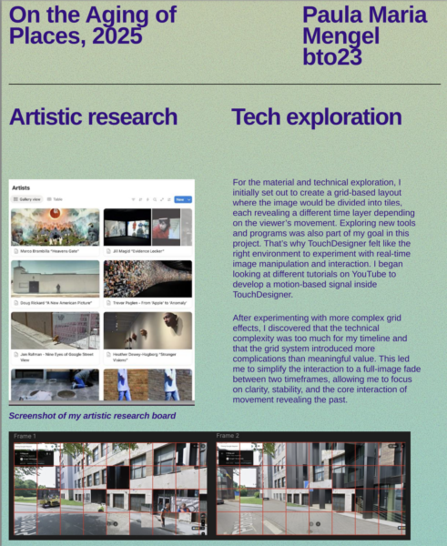 Aeg ja lagunemine ilmusid teostes teistmoodi, aga sama visalt. Ühes kohas kasutati digitaalseid arhiive ja “kõiketeadvaid” platvorme, et vaadata, kuidas ruum vananeb ja kuidas nostalgia tekib mitte mälust, vaid masinavaatest. Teistes oli aeg kehaline. Pulsist sai pilt. Liigutusest statistika. Privaatne ruum muutus vaatlusalaks. Siin pöördus digitootedisaini harjumus “mõõta” ja “optimeerida” iseenda vastu. Äkki ei ole probleem selles, et me ei oska andmeid koguda, vaid selles, et me kogume neid liiga lihtsakäeliselt ja kerglaselt.