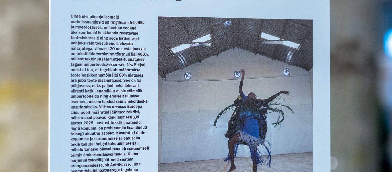 EKA Jätkusuutliku disaini ja materjalide labori ehk DiMa näituselt Disainiöö / Tallinn Design Festivalil leiadus DiMa viimaste aastate uurimissuundade tulemusi ja näiteid tekstiilijäätmete ringlussevõtust ja taaskasutusest.