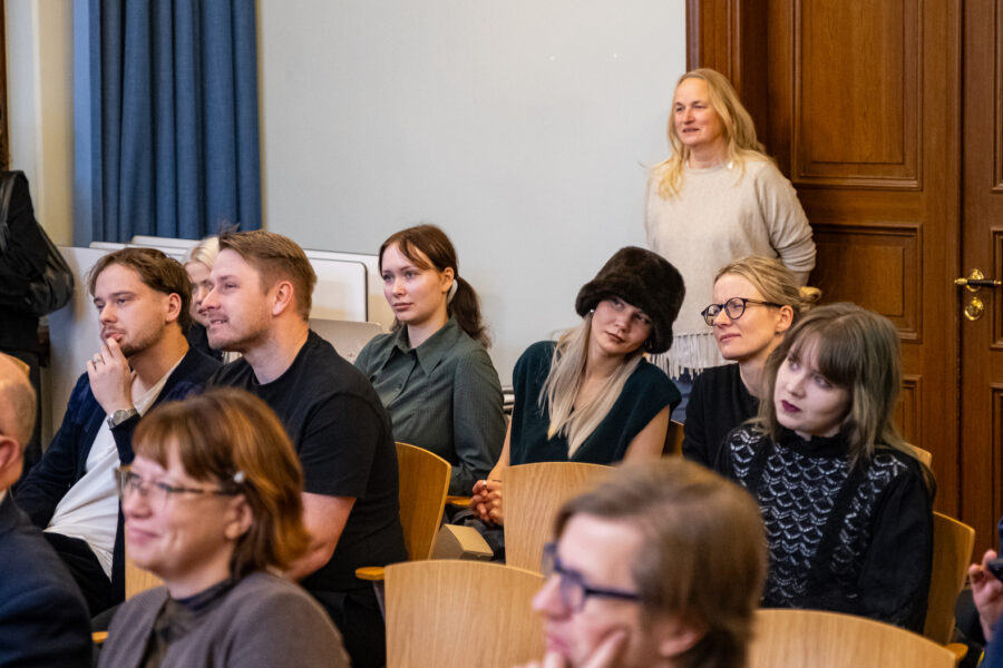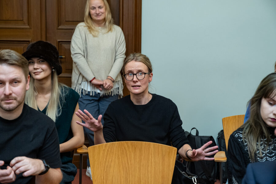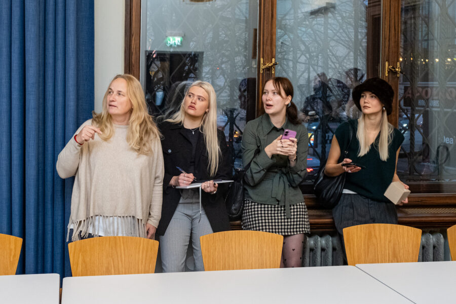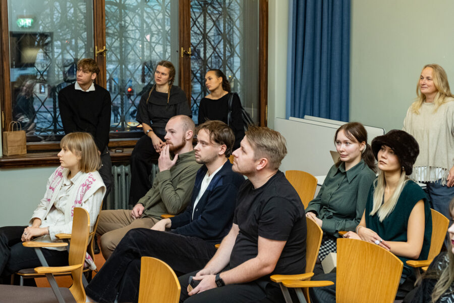 Tudengid ja EKA disainiteaduskonna dekaan Ruth-Helene Melioranski. Foto: Aaron Urb