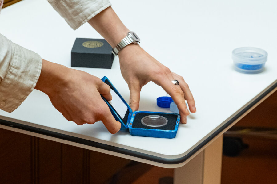 Eesti Pank annab välja erilise kujundusega väärismetallist meenemünte, et tõsta esile Eesti kultuuri jaoks tähtsaid isikuid ja sündmusi. Keskpank emiteerib aastas mitu hõbedast meenemünti ja annab harvem välja ka kuldmünte. Seni on meenemündid olnud pakendatud nafta baasil valmistatud karpidesse, mis on tänaseks ajale jalgu jäänud. Selle tõttu pöördus Eesti Pank sel suvel EKA poole, et paluda noorel disainerite generatsioonil luua uus lahendus, mis vähendaks keskkonnajalajälge.
